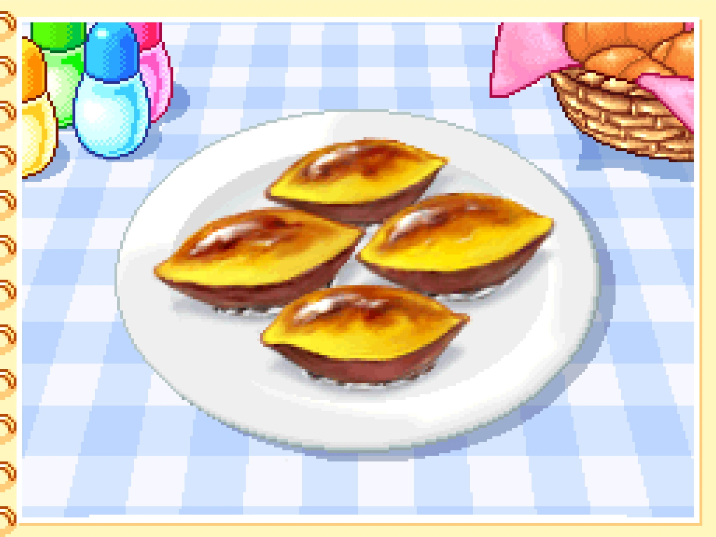 Here in Cooking Mama, it instead refers to a Japanese, cake-like dessert which involves pureeing Japanese sweet potatoes and piped into oblong molds. As the potatoes used to make this recipe have its own Japanese translation, these cakes are referred in Japan as Sweet Potato (スイートポテト) the same way it would be pronounced in English.